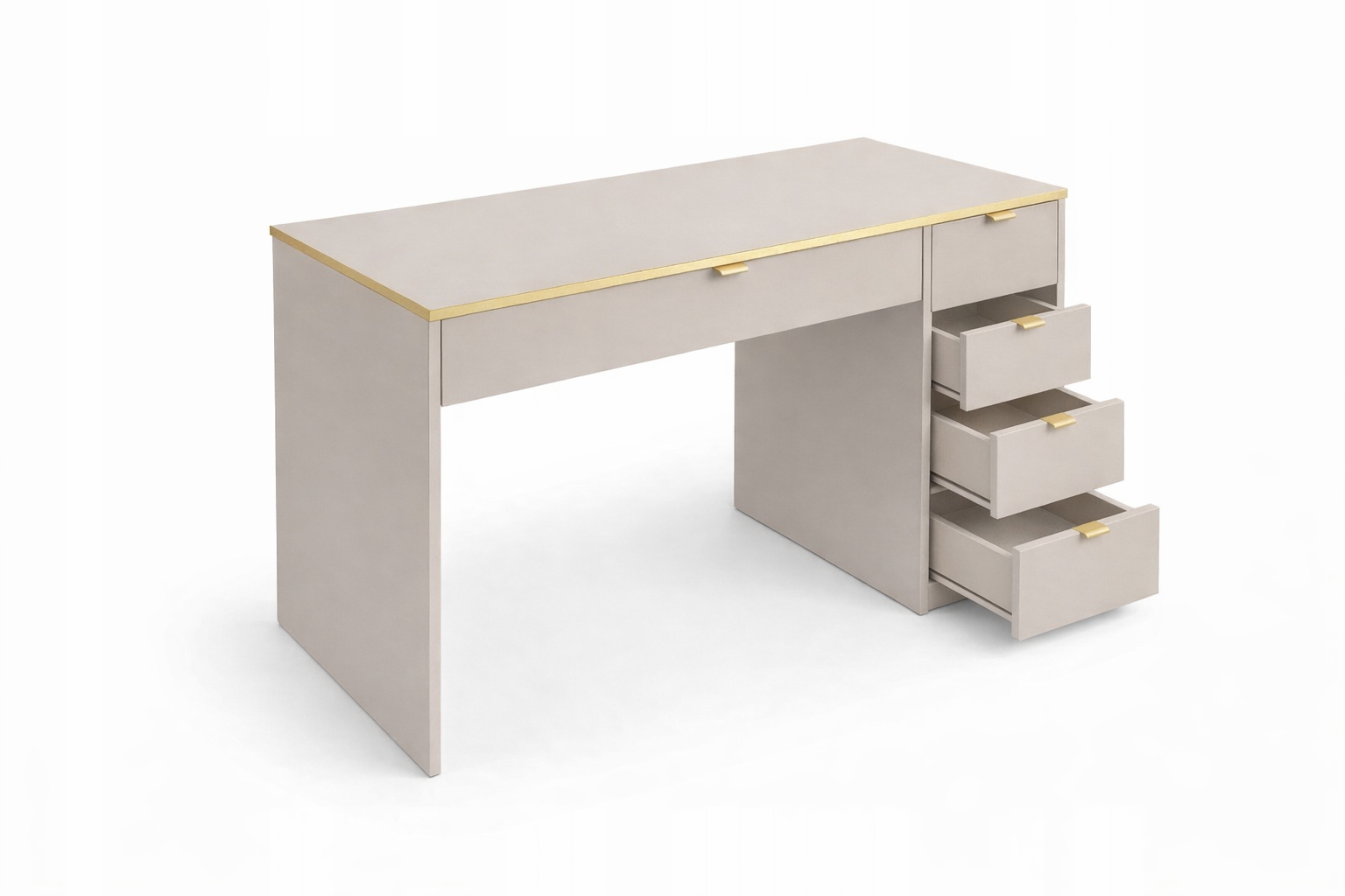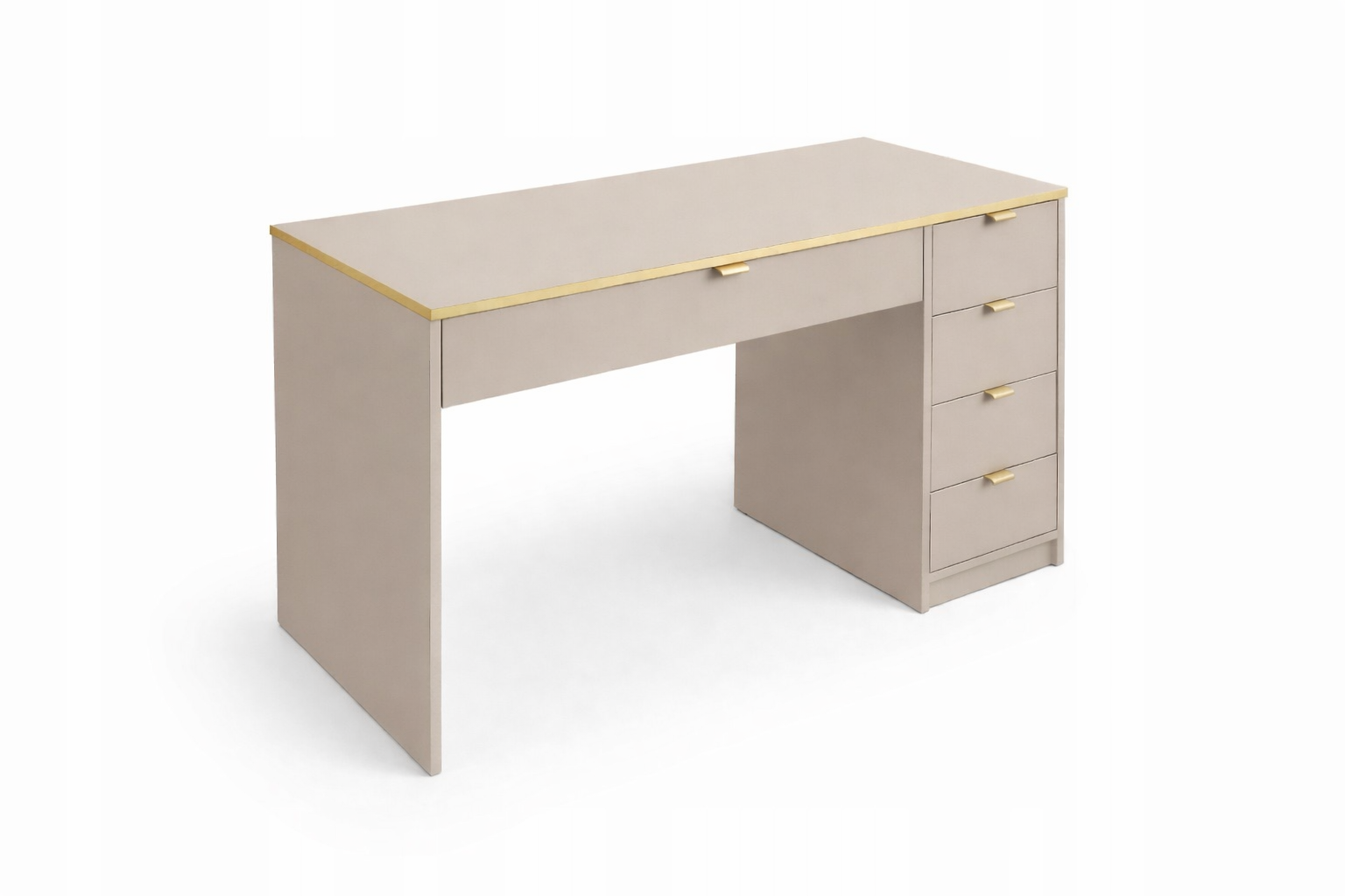 Szukasz stylowego i praktycznego biurka do pracy, nauki lub home office? To nowoczesne biurko w kolorze kaszmir ze złotymi akcentami to idealne połączenie designu i wygody użytkowania.
