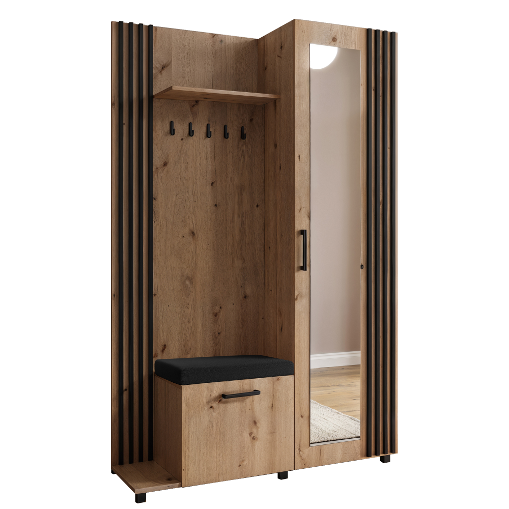 Garderoba dąb artisan + czarne lamele lewa LIVIA