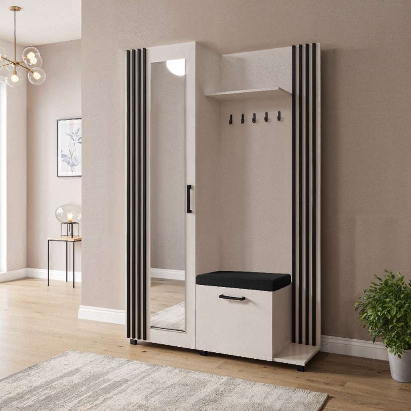 Garderoba słupek wieszaki i szafka kaszmir + lamele czarne LIVIA