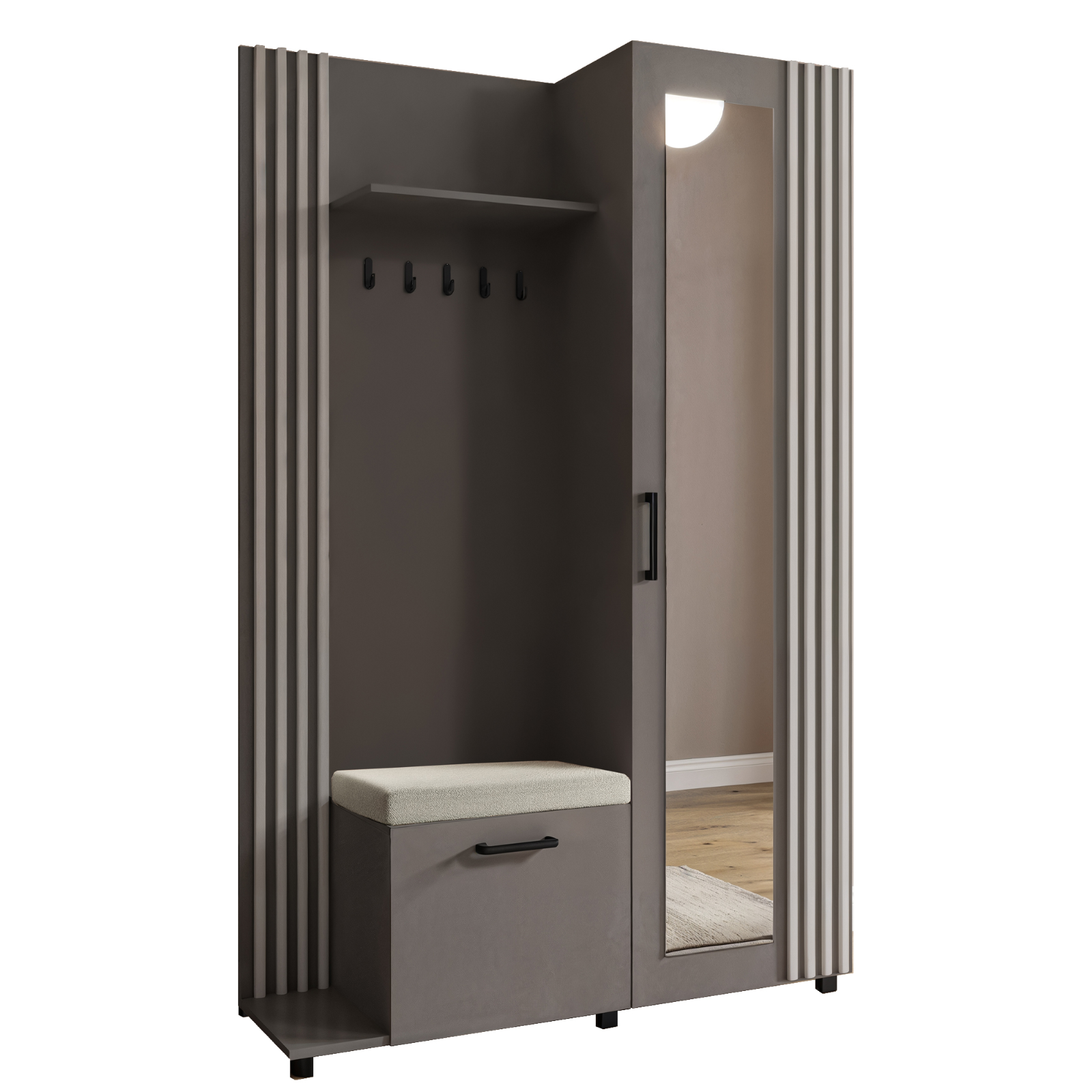 • Panel z wieszakami i szafką: