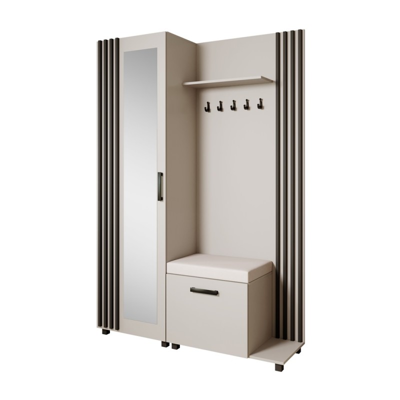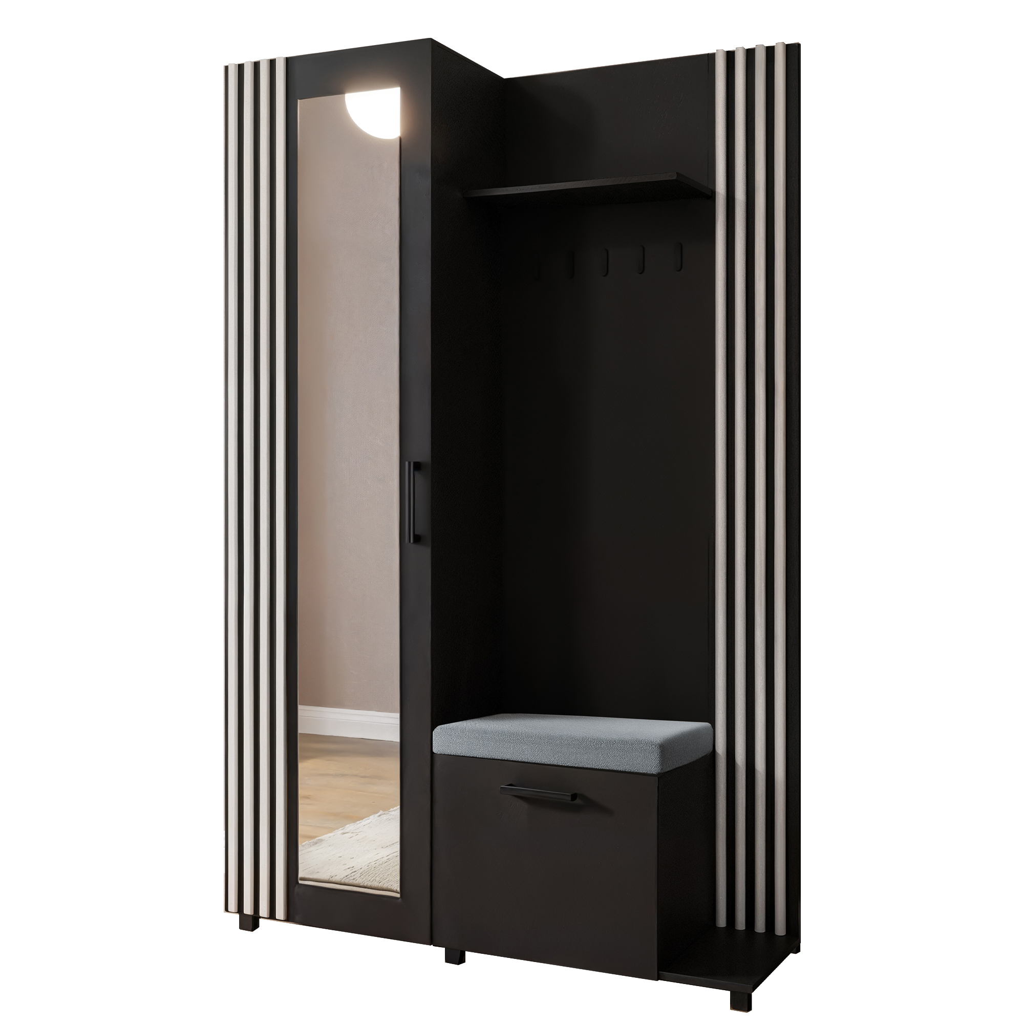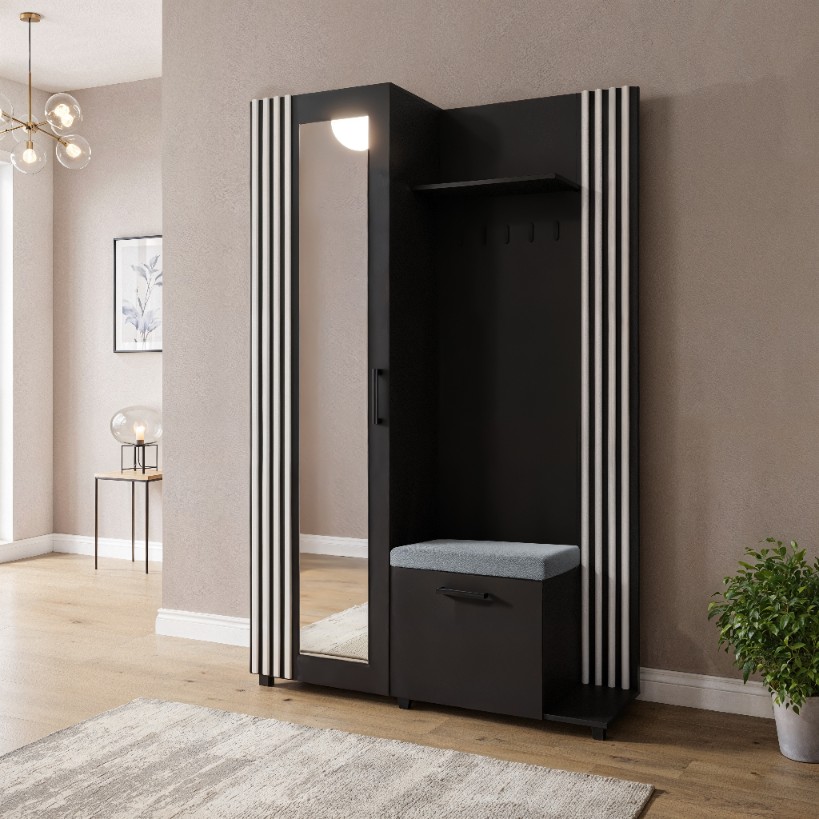 Garderoba słupek wieszaki szafka czarna lamele białe LIVIA