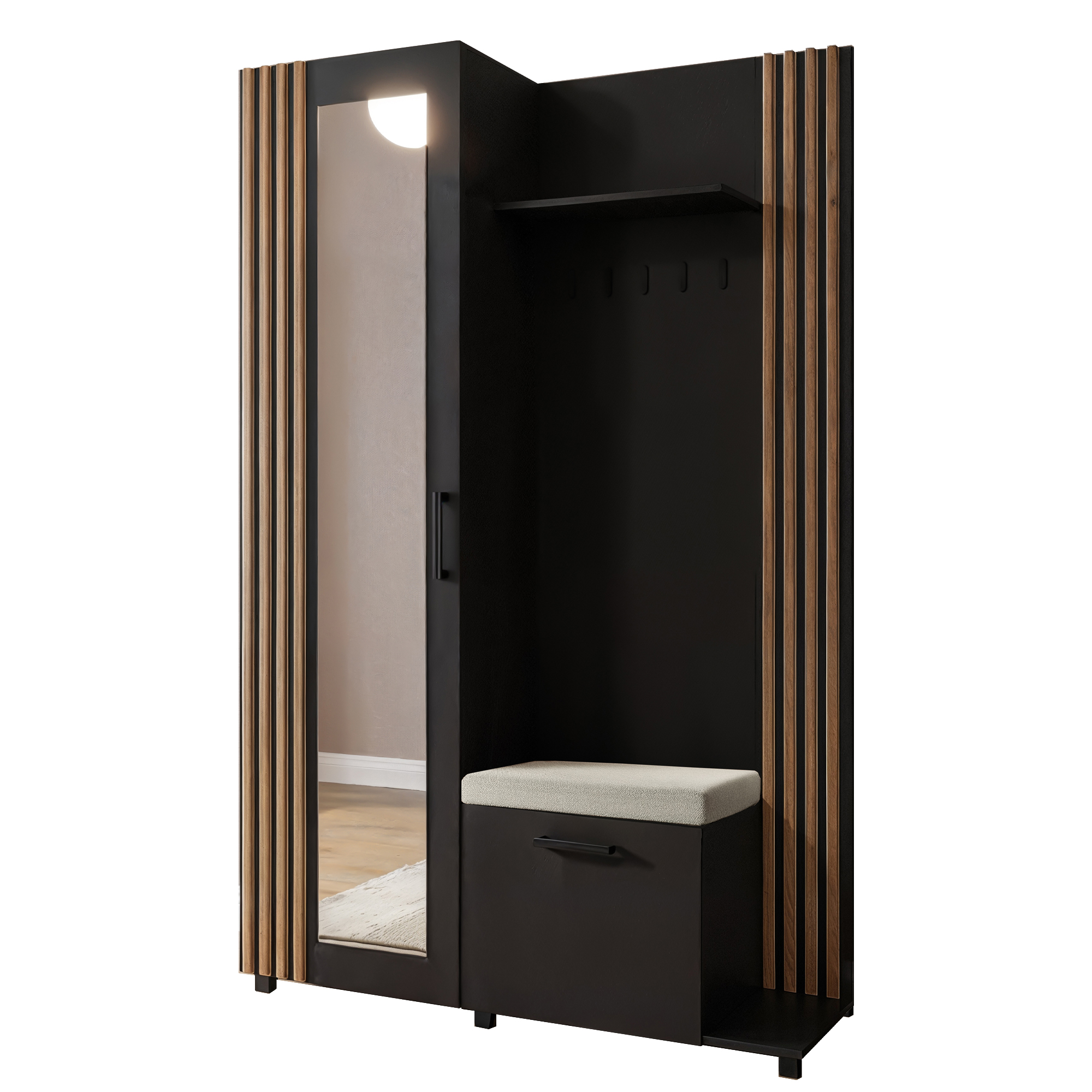Garderoba słupek wieszaki szafka czarna lamele dąb artisan LIVIA