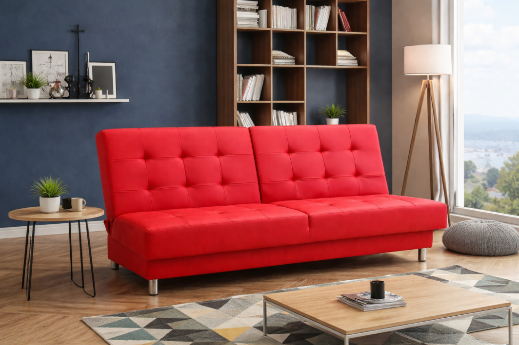 Kanapa sofa wersalka 199 cm czerwona eko skóra MM bb