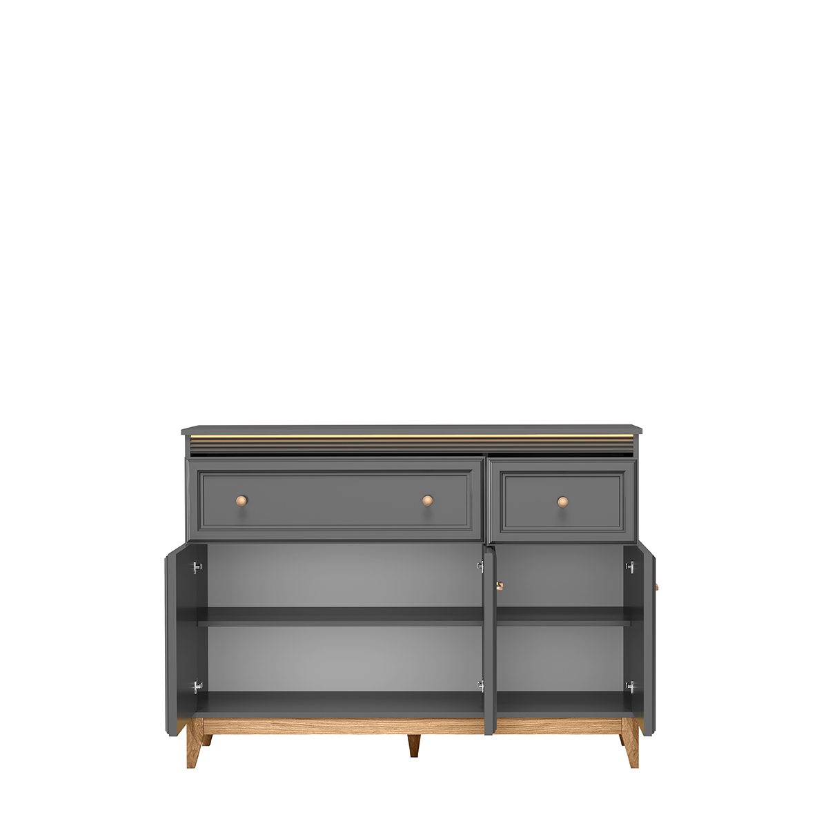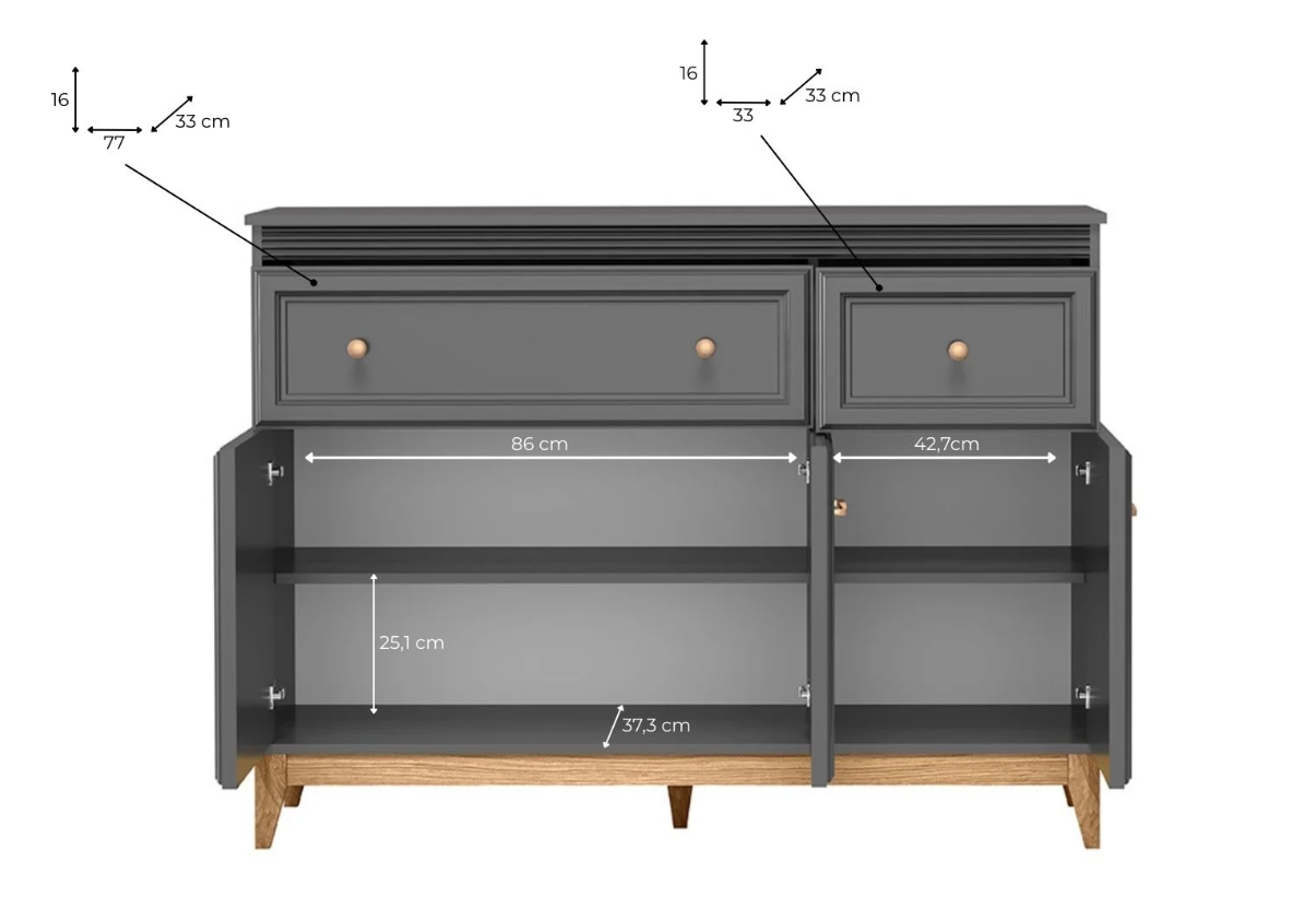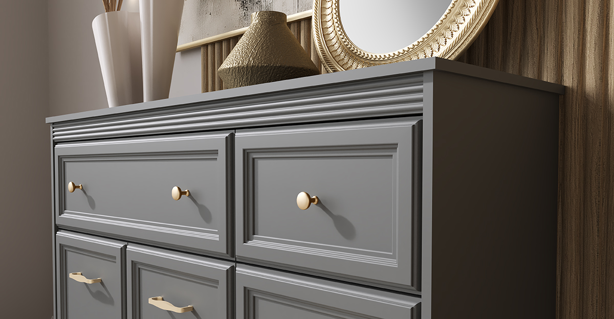 • w komodach szuflady na prowadnicach kulowych z miękkim dociągiem