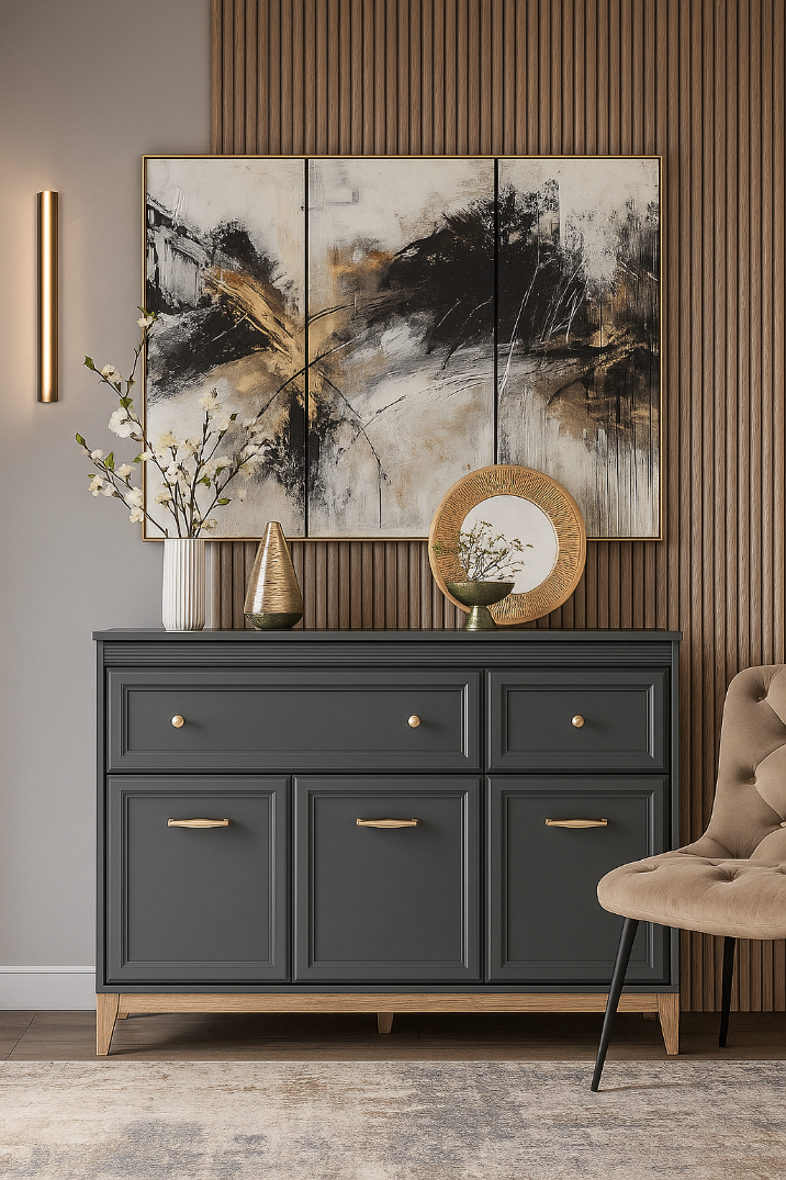 System pozwala stworzyć spójną aranżację salonu, oferując praktyczne miejsce do przechowywania i estetyczną oprawę strefy wypoczynkowej.