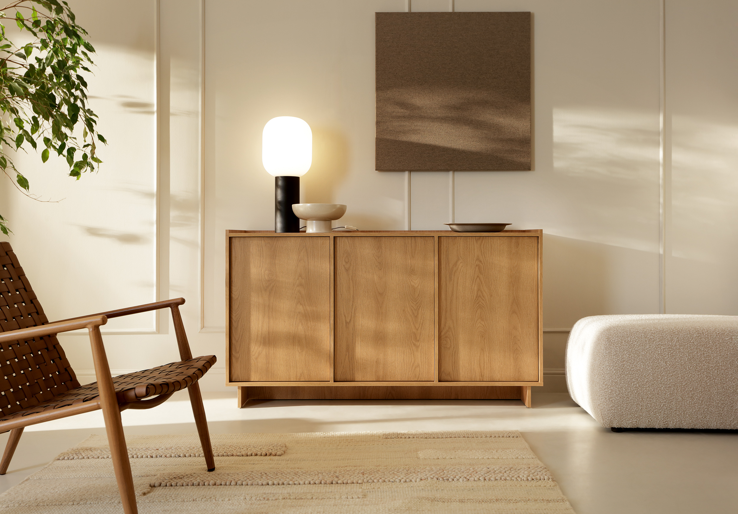 Meble Yasumi to elegancka kolekcja, charakteryzująca się zrównoważonymi proporcjami, jednolitymi frontami oraz ciepłą barwą drewna, która nadaje jej spokojny, a jednocześnie nowoczesny wygląd.