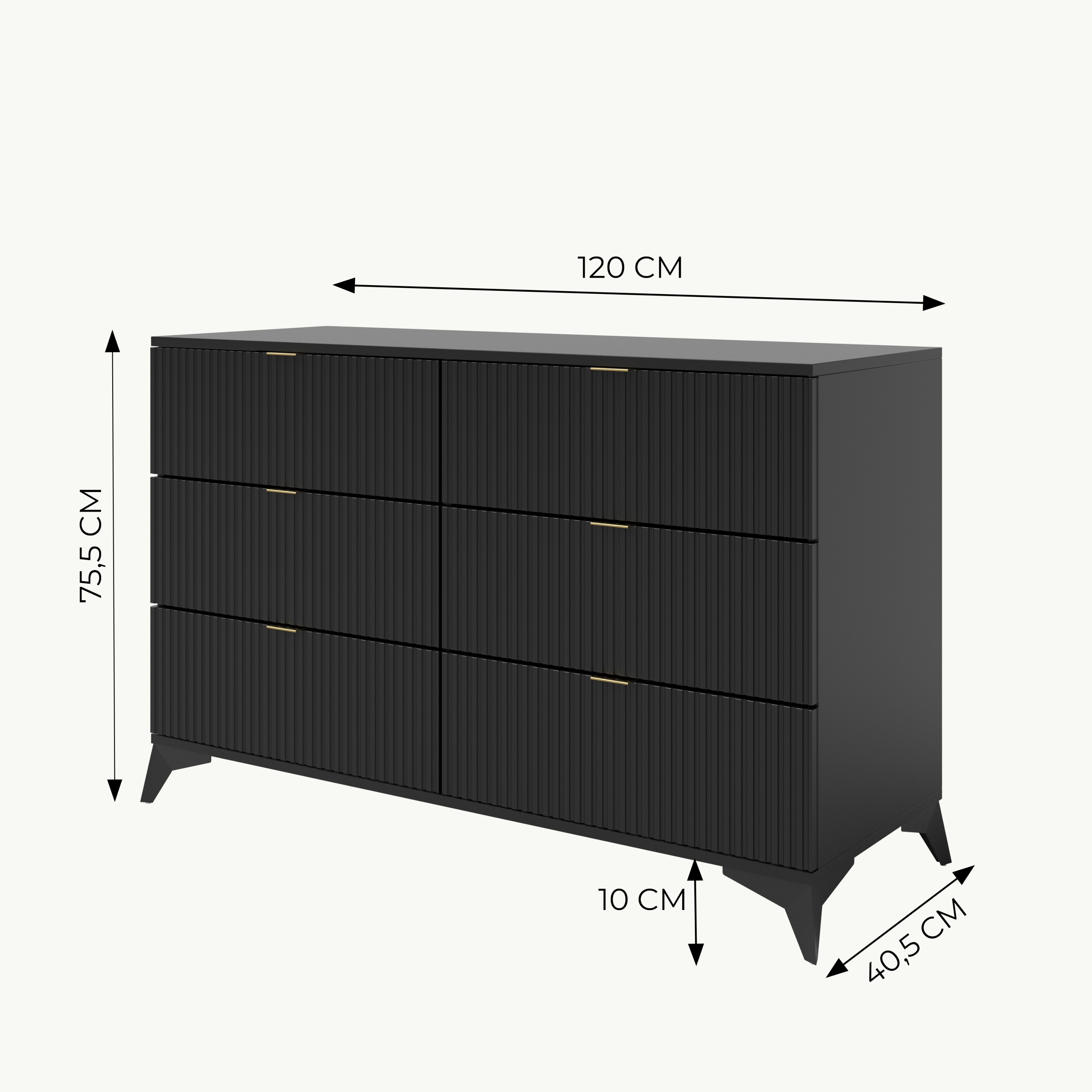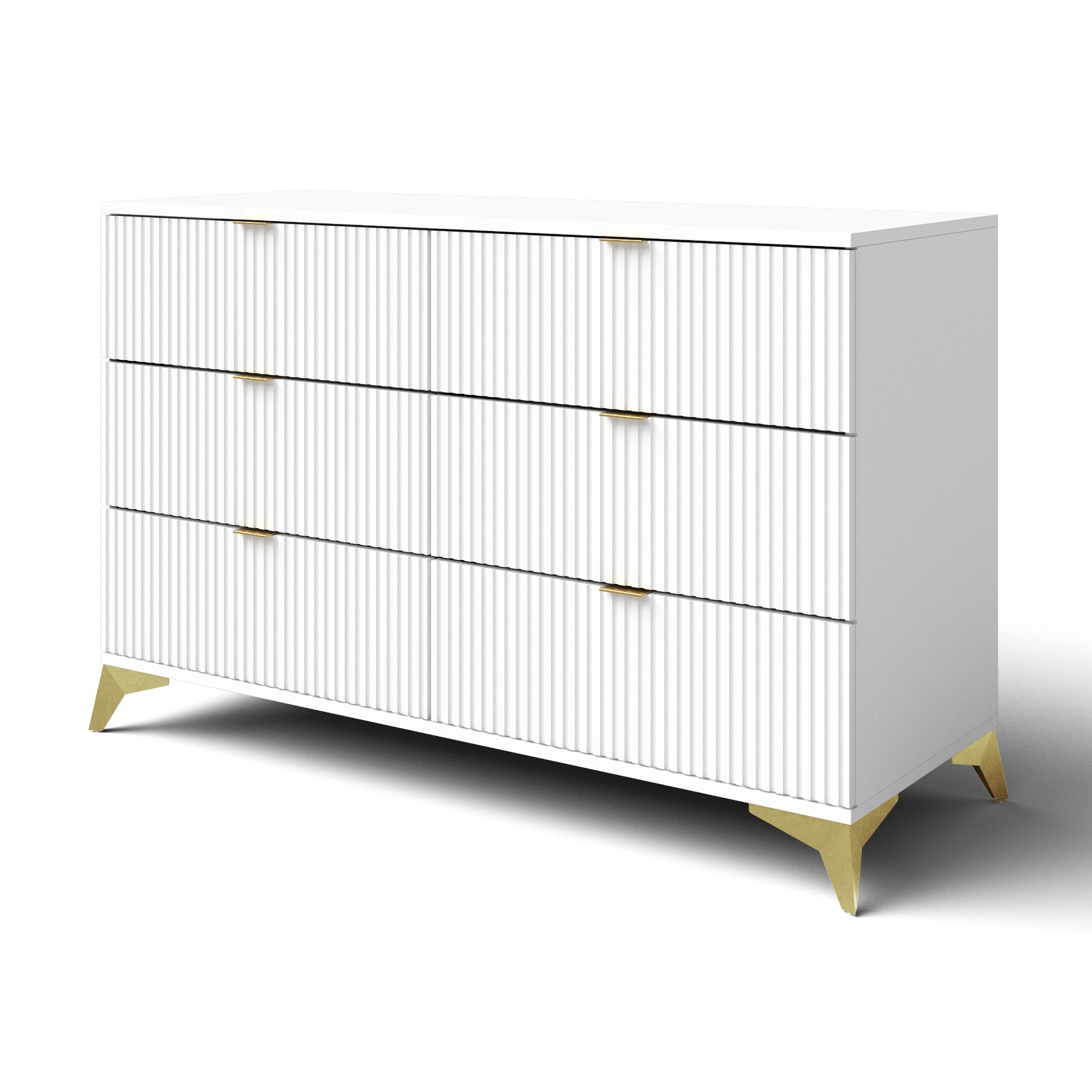Komoda ALEX 1 ryflowana z nóżkami biała 120cm złoty uchwyt