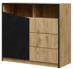 Komoda nowoczesna 3 szuflady 100 cm dąb odwieczny + czarny AS4