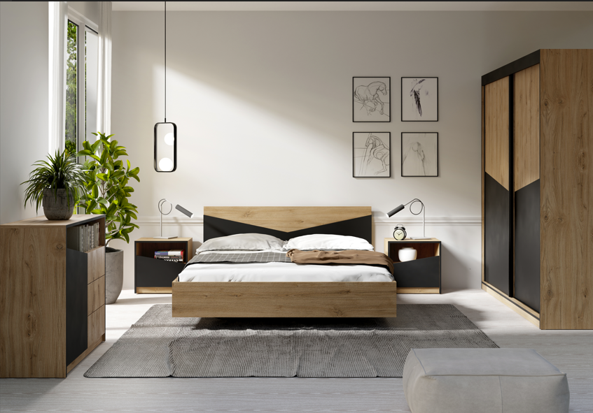 • Korpus w kolorze dąb odwieczny oklejony czarnym obrzeżem; płyta laminowana 16 mm; obrzeże ABS 0,5 mm;