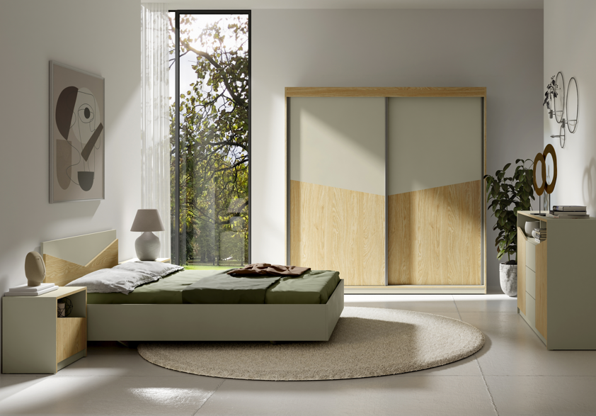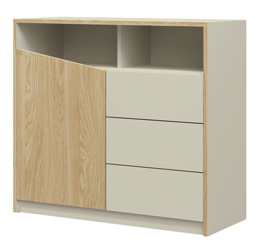 Komoda nowoczesna 3 szuflady 100 cm szarobeżowy + dąb olejowany AS4