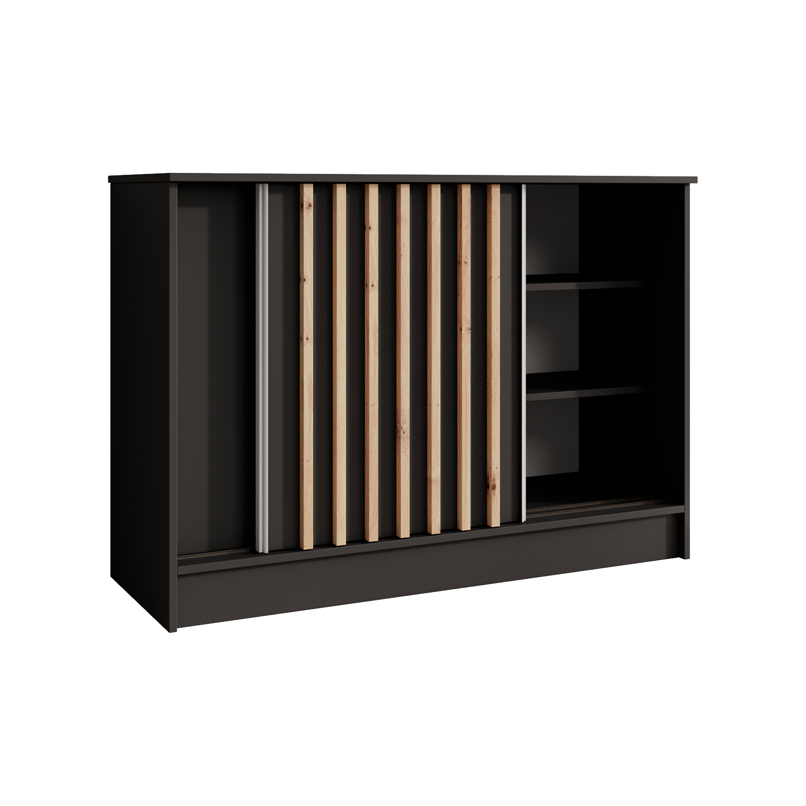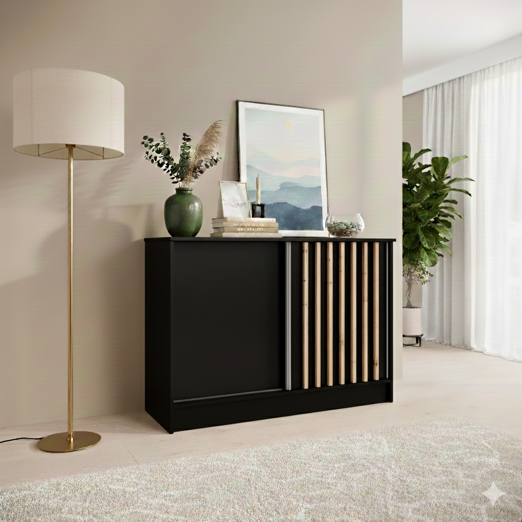 Komoda przesuwna 121 cm czarna z lamelami dąb artisan LAM