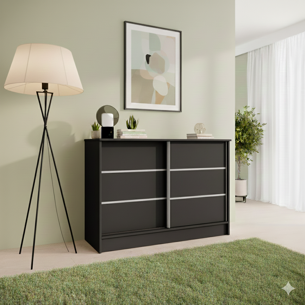 Komoda przesuwna ze szprosami 121 cm czarna K120