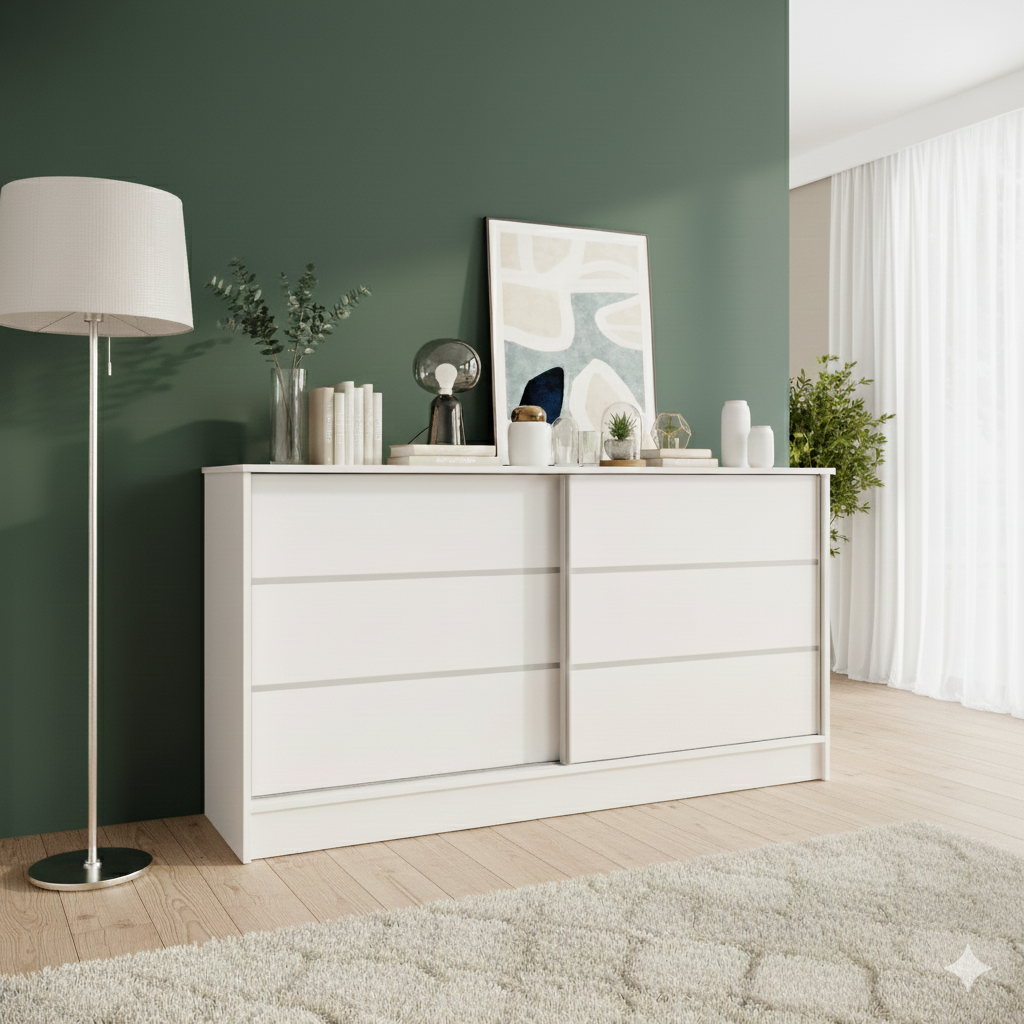 Komoda przesuwna ze szprosami 161 cm biała K160
