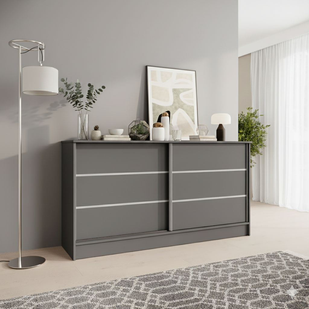 Komoda przesuwna ze szprosami 161 cm szara grafit K160