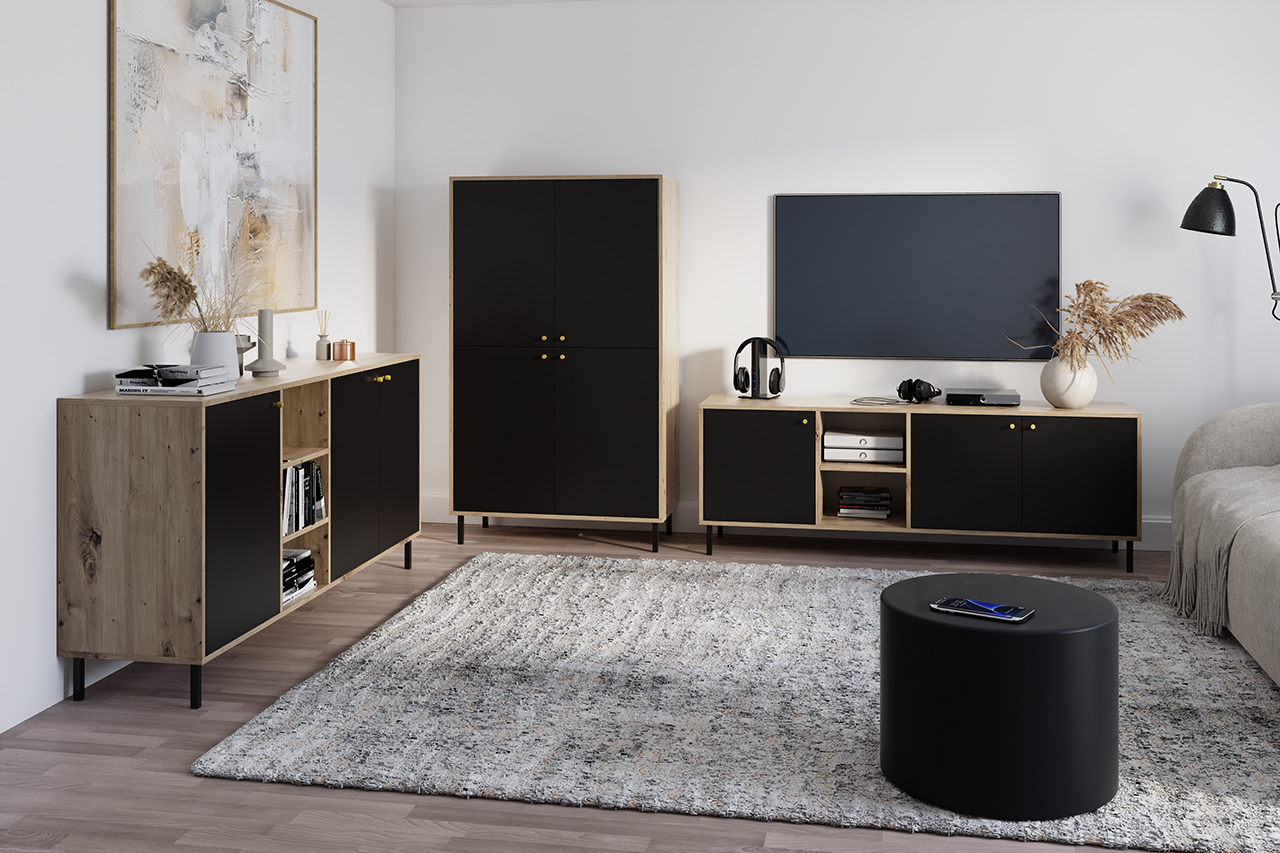 w kolorze dąb artisan + czarny mat