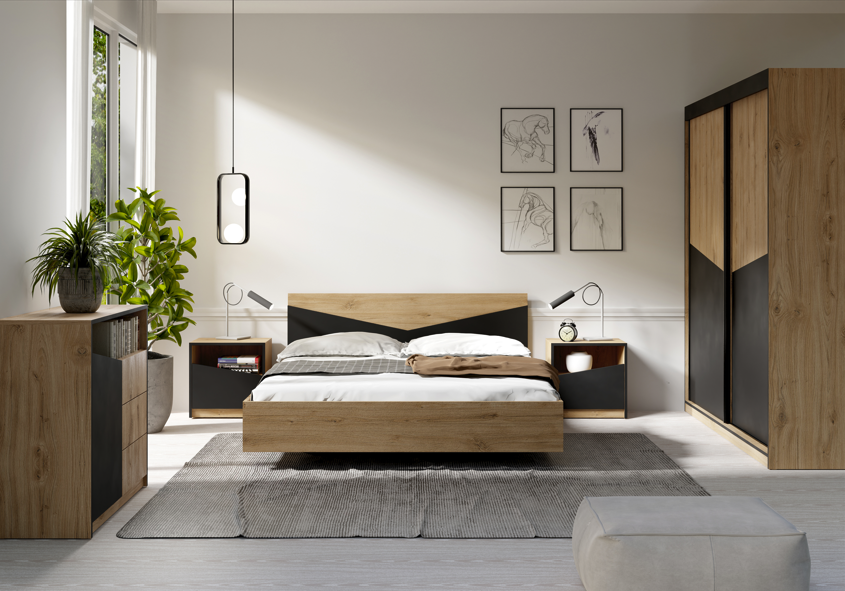 Łóżko pod materac 160 x 200 cm dąb odwieczny + czarny AS8
