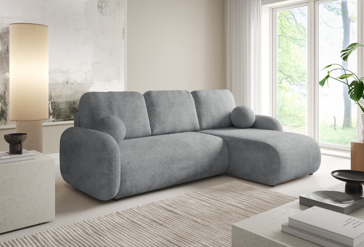Tkanina ze zdjęcia narożnika – Cremona, to przyjemna w dotyku plecionka szenilowa o wyraźnym, grubym splocie.