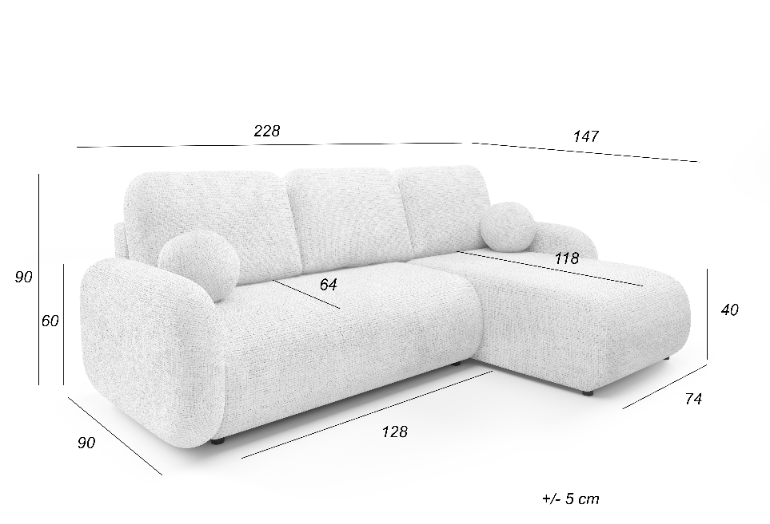 - funkcja spania, powierzchnia: 123 x 202 cm