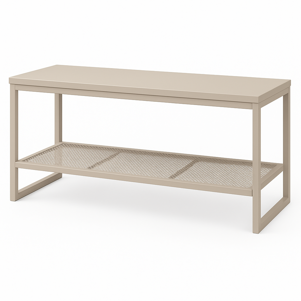 Nowoczesna i funkcjonalna szafka RTV, która świetnie sprawdzi się w salonie, sypialni czy pokoju dziennym. Połączenie białego blatu z czarnym, metalowym stelażem nadaje całości eleganckiego, loftowego charakteru.