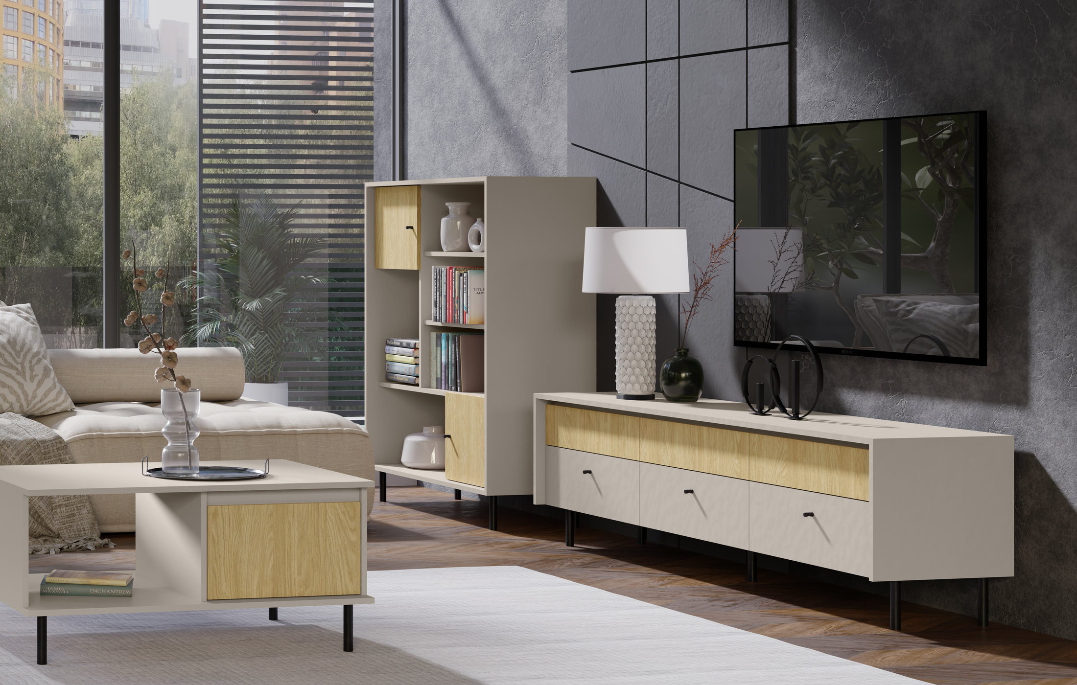 Regał otwarty z szufladami beż piaskowy + dąb piaskowy MALTA 4