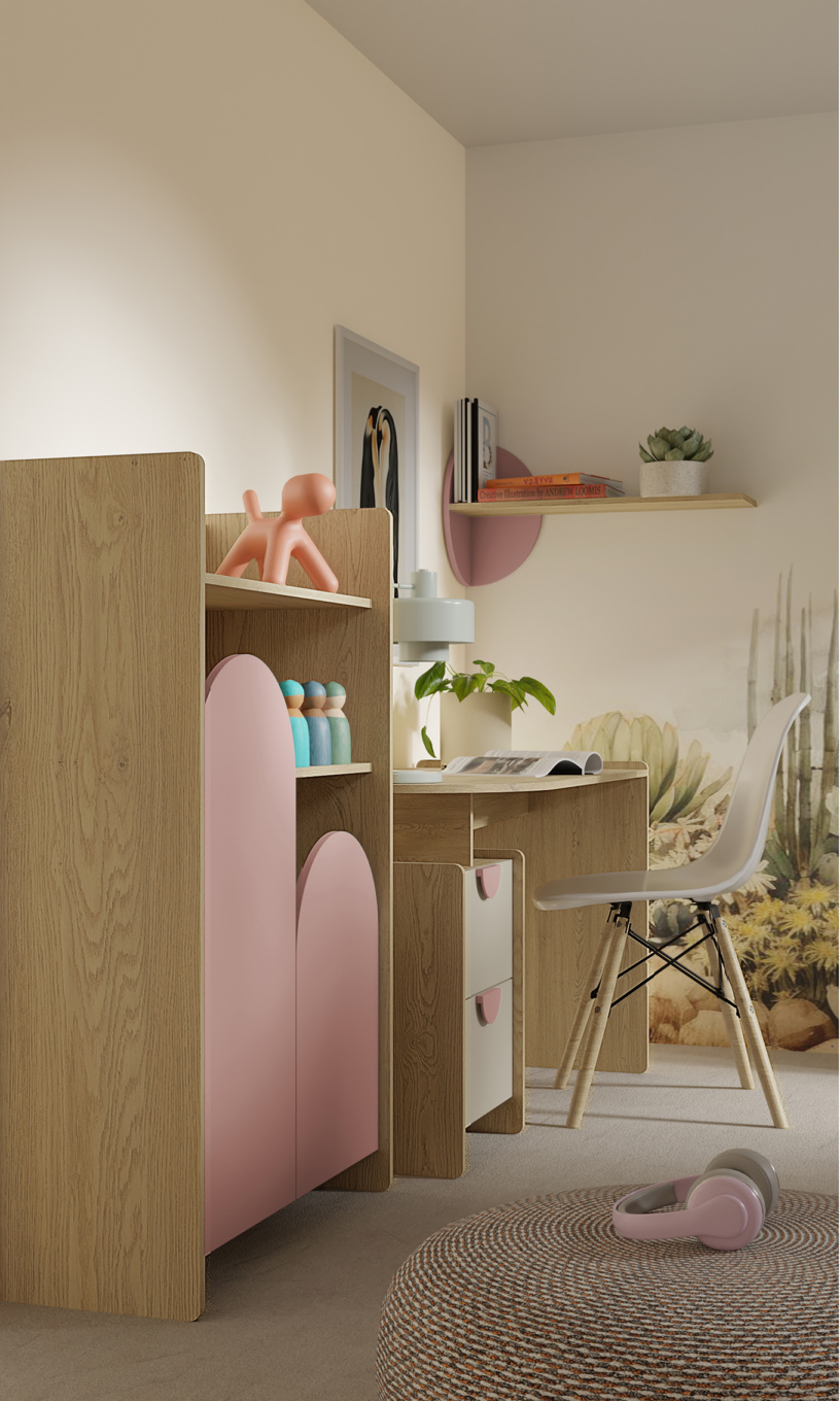 Regał Lexi 5 (dąb cremona/macadamia/pudrowy róż)