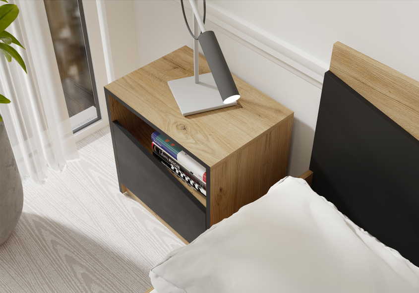 Stolik nocna szafka nowoczesna 50 cm dąb odwieczny + czarny AS6