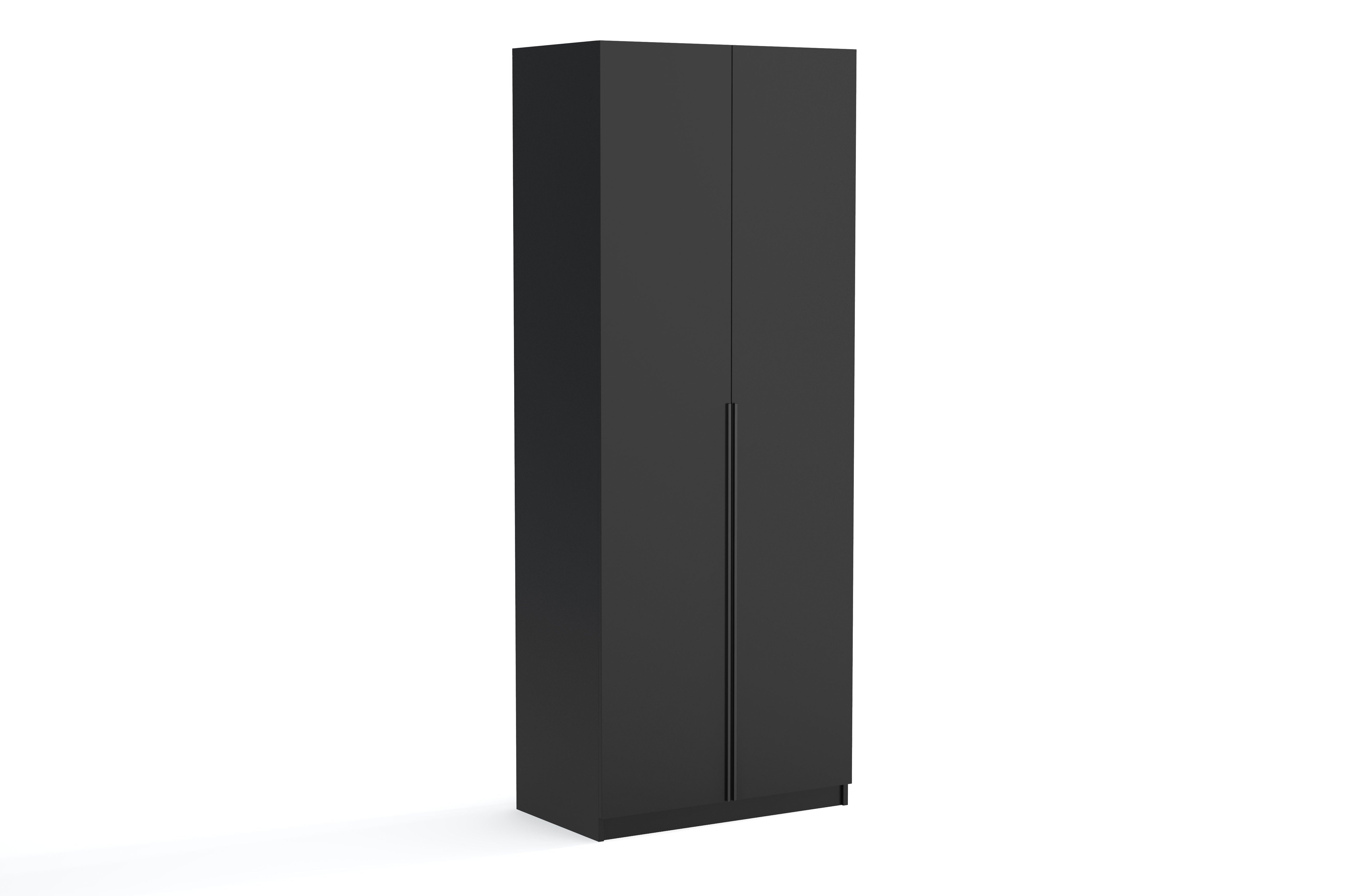 Praktyczna i elegancka szafa dwudrzwiowa o szerokości 90 cm, która doskonale sprawdzi się w sypialni, garderobie, przedpokoju lub pokoju młodzieżowym. Prosty, minimalistyczny design oraz uniwersalny czarny kolor sprawiają, że mebel łatwo dopasuje się do różnych aranżacji wnętrz.