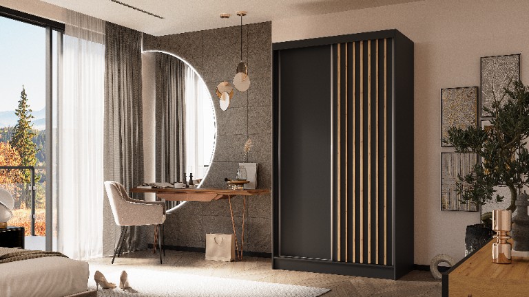Szafa 120 cm czarny / dąb artisan lamele LAM120
