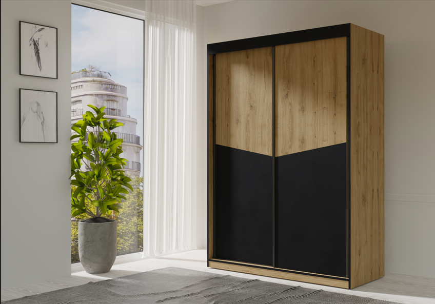 Szafa dwudrzwiowa przesuwna 150 cm dąb odwieczny + czarny AS2