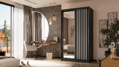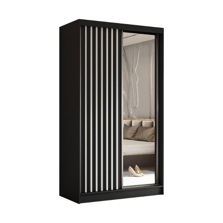 Szafa z lamelami + lustro 120 cm czarna z szufladami LAM120