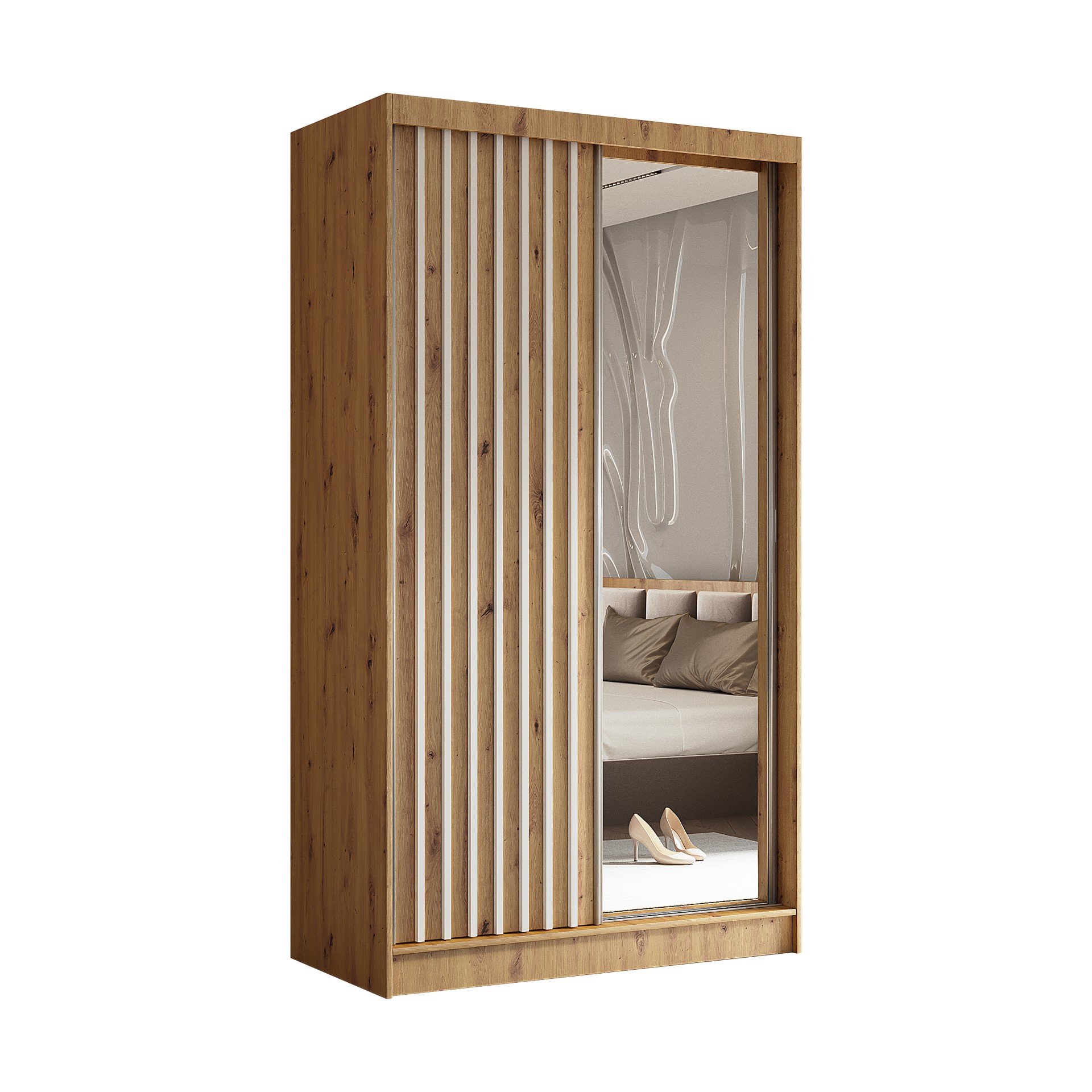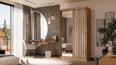 Szafa z lamelami + lustro 120 cm dąb artisan z szufladami LAM120