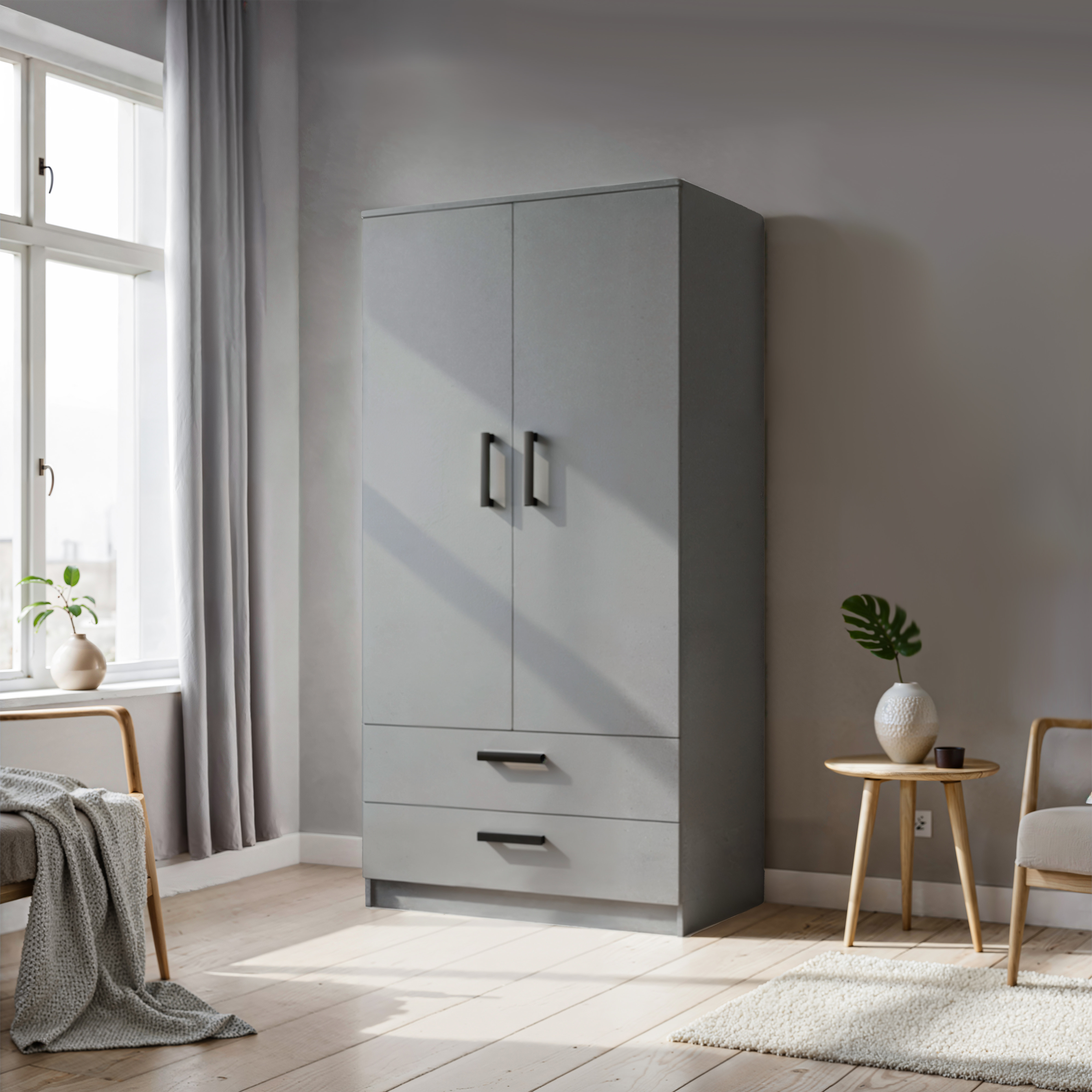 Dzięki swojemu minimalistycznemu designowi szafa doskonale sprawdzi się w różnych pomieszczeniach – sypialni, salonie, pracowni, a także w pokoju młodzieżowym.