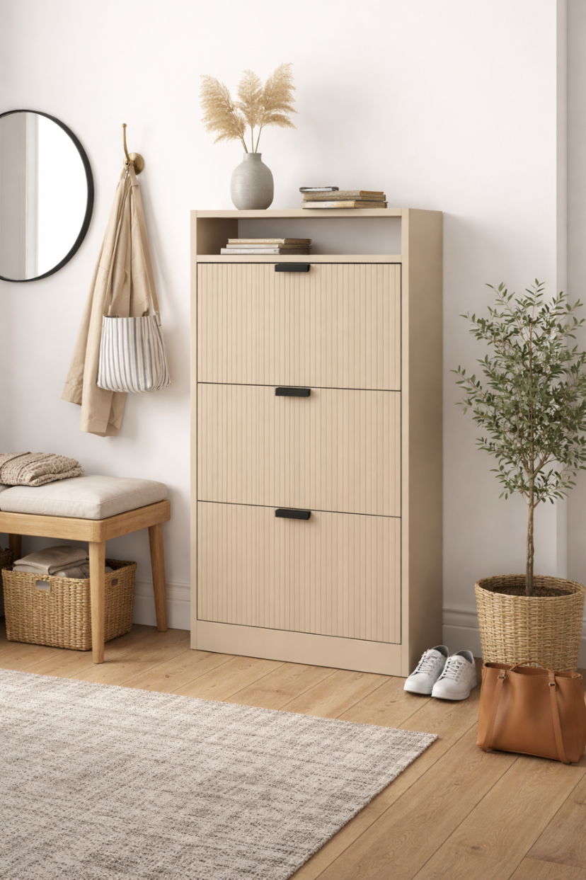 • Szafka na buty wykonana z płyty laminowanej w kolorze kaszmir