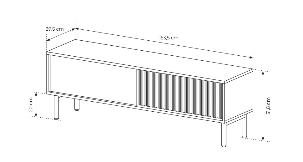 Szafka RTV to połączenie nowoczesnego wzornictwa i klasycznej formy, które tworzą mebel o wyjątkowym charakterze. Prosta, geometryczna bryła została przełamana dekoracyjnym frontem z pionowym frezowaniem, dzięki czemu komoda prezentuje się lekko i elegancko.
