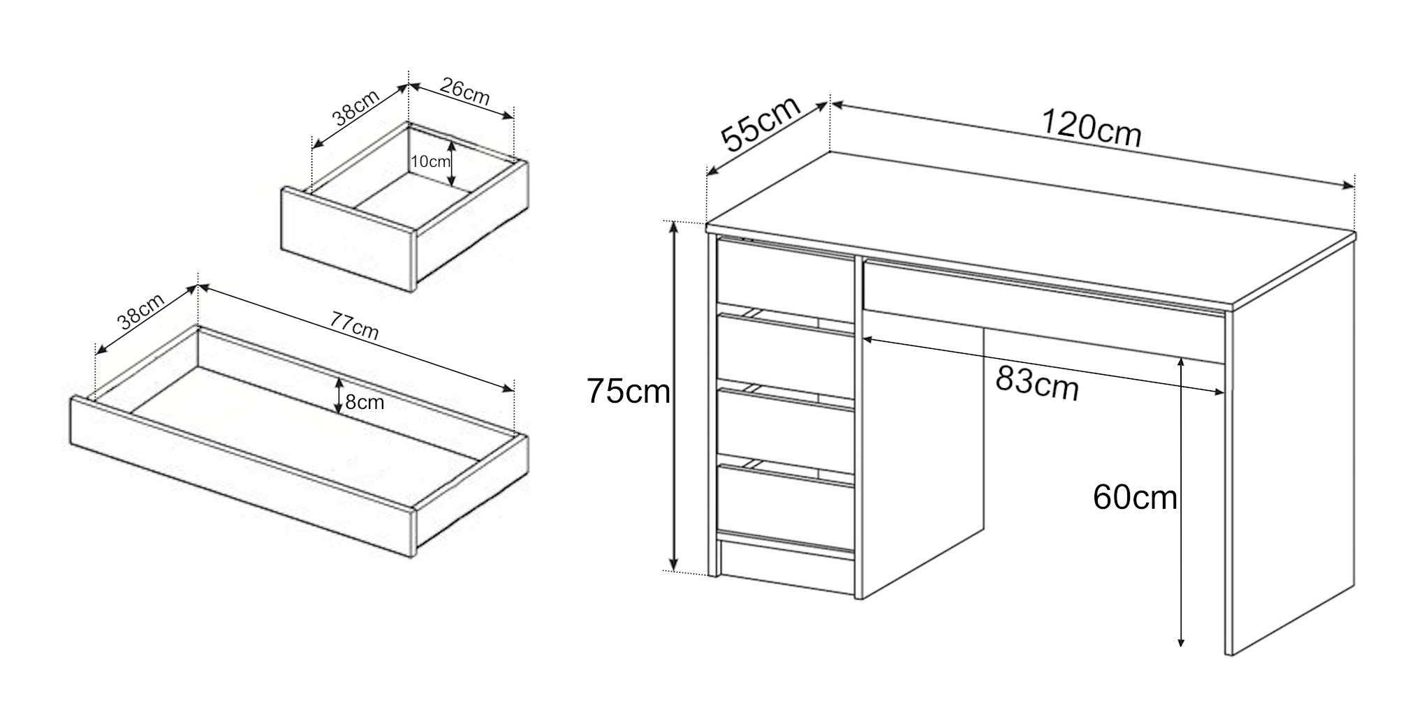 - strona ustalana przez klienta podczas montażu (należy nawiercić biurko zgodnie z instrukcją na odpowiednią stronę) lewa lub prawa; nie trzeba wpisywać wybranej strony przy zamówieniu