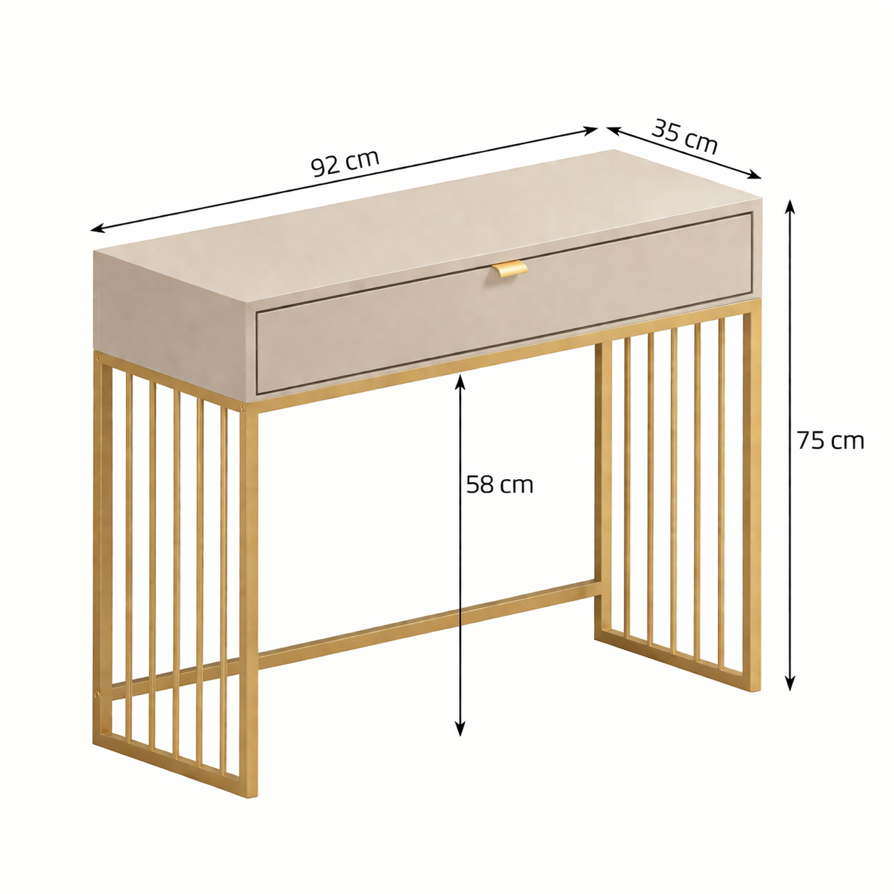 - nogi wykonane z metalu malowanego proszkowo na złoty (drobna struktura)