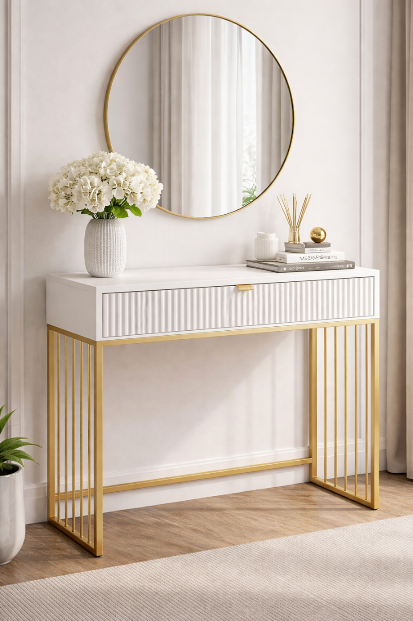 Toaletka Zoya ryflowana (biała + złote nogi)