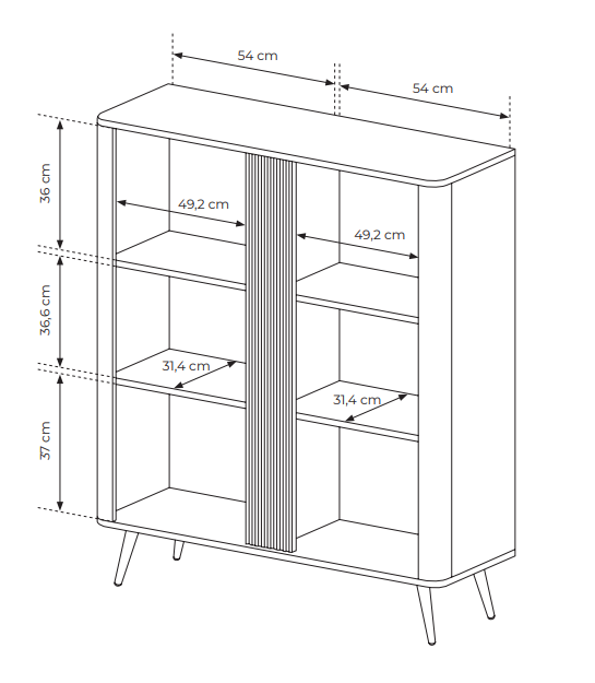 Komoda posiada półki za drzwiami:
