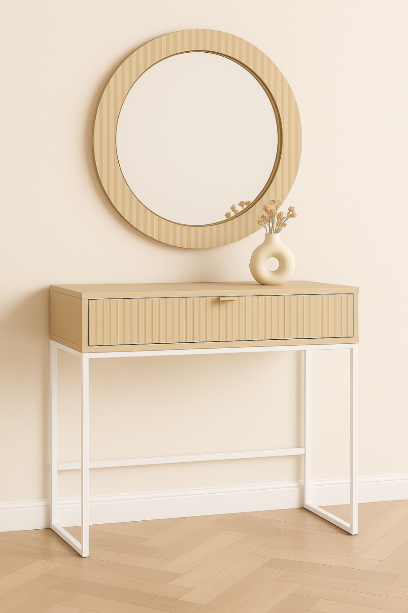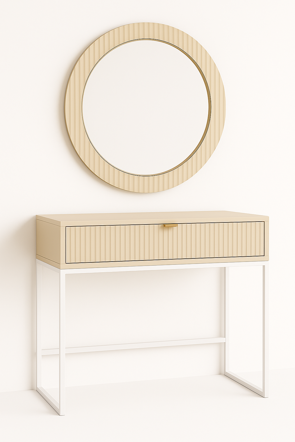 Zestaw Toaletka ryflowana 92cm kaszmir białe nogi + lustro kaszmir