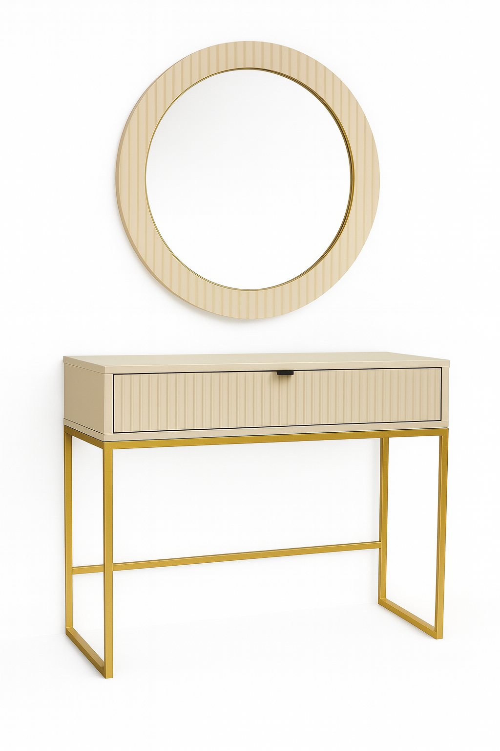 Zestaw Toaletka ryflowana 92cm kaszmir złote nogi czarny uchwyt + lustro