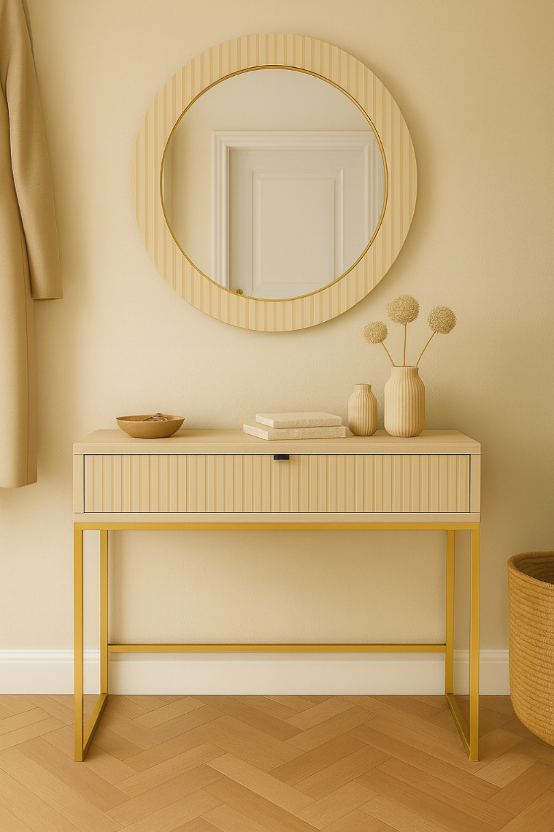Wprowadź do swojego wnętrza nutę elegancji i nowoczesnego stylu dzięki tej wyjątkowej toaletce. Jej minimalistyczny design, subtelne detale i funkcjonalność sprawiają, że świetnie sprawdzi się zarówno w sypialni, salonie, jak i przedpokoju.