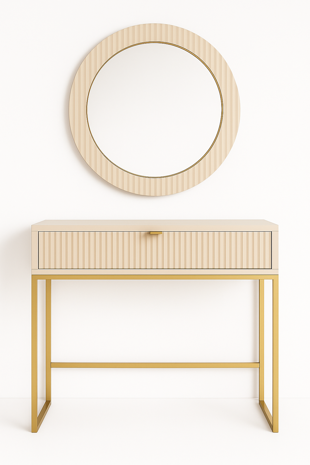Zestaw Toaletka ryflowana 92cm kaszmir złote nogi + lustro kaszmir